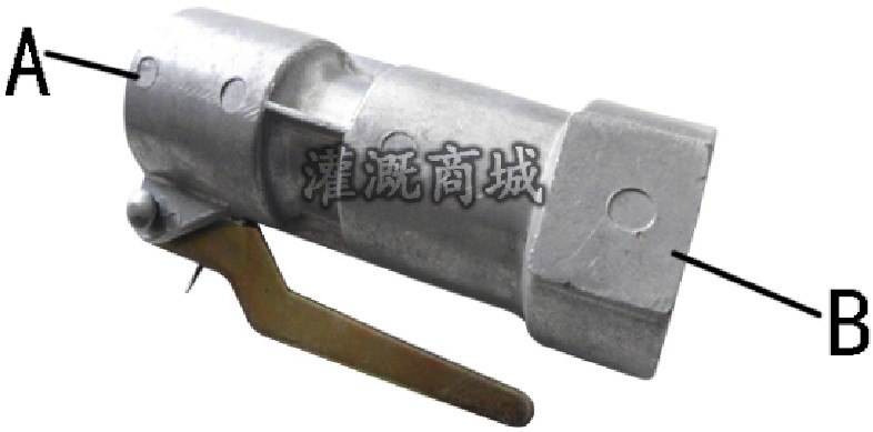 1.“A”为卡口端,与立杆相连接,“B”为丝口端(内螺纹),与输水管道连接。