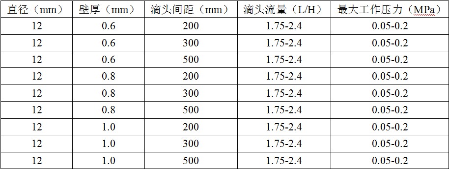 直径12 内镶柱式滴灌管价格列表